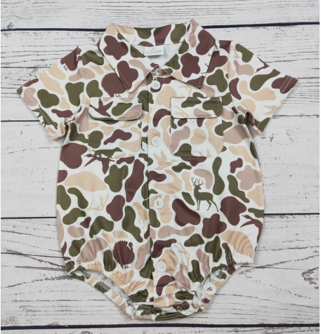 Camouflage Printed Baby Boy Bubble with Pocket